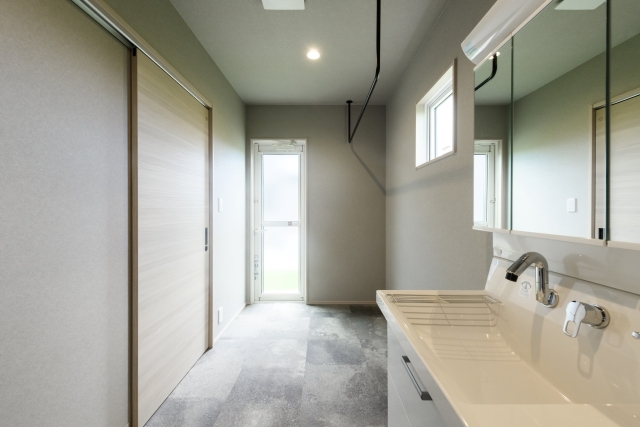 ・洗面室の奥には便利なサンルーム付きで、天気を気にせず洗濯物が干せます。